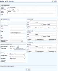 pojawi się karta '''Dodaj nowy kontakt''' opisana powyżej, po jej wypełnieniu i zapisaniu system powróci do karty