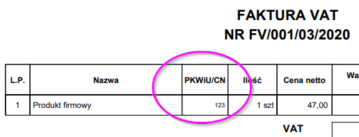 - Zaktualizowano etykietę "PKWiU" na "PKWiU/CN" w systemie CRM oraz na wydrukach faktur PDF