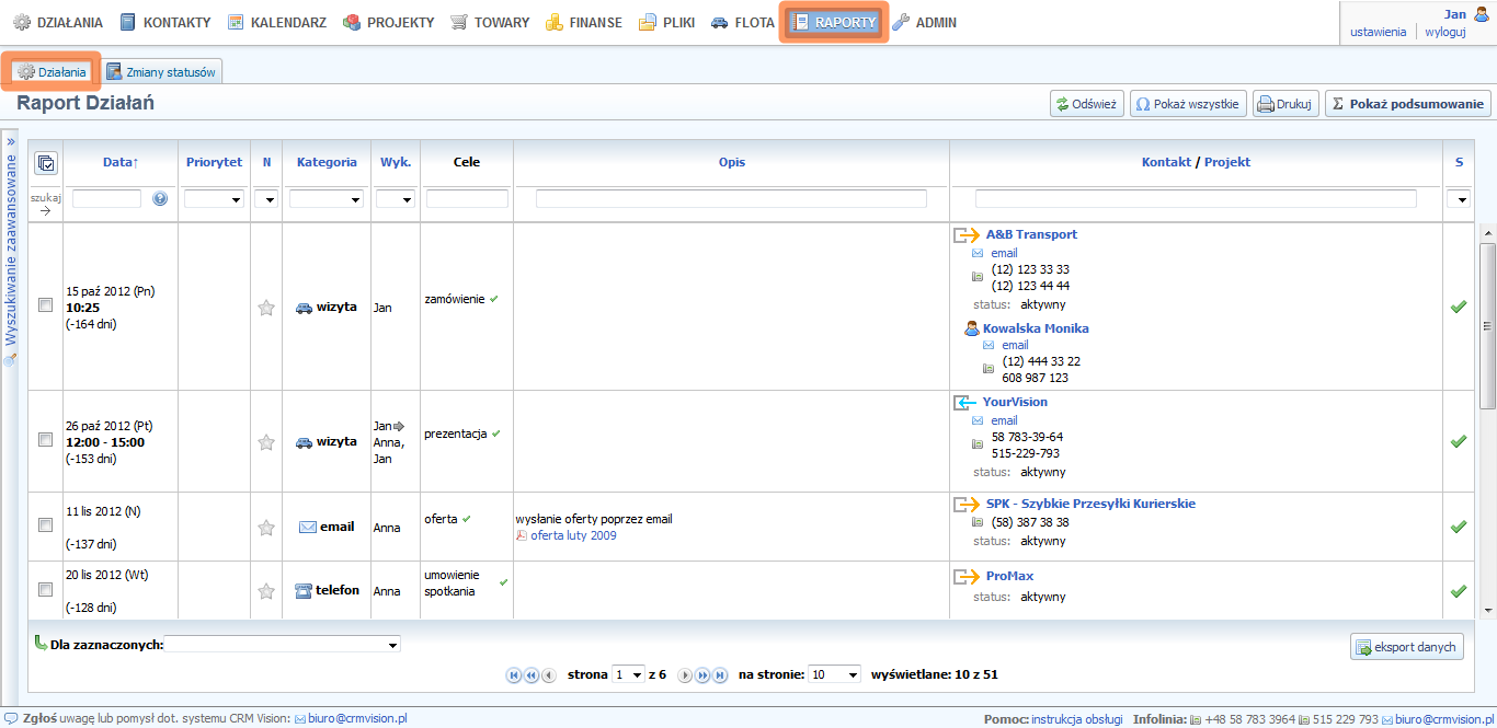Z Pomoc systemu CRM VISION
