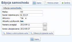 Edycja danych pojazdu